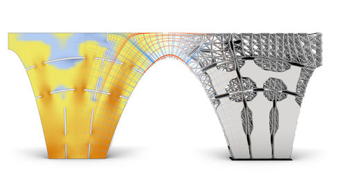 The research also uses structural principles as a guiding factor for the development of the material system and employs an integrative co-design approach to manage the reciprocal relationships between structural performance, material system behaviour and fabrication processes. Digital studies of mechanical properties and computational analyses inform the distribution, orientation, and gradation of the materials.